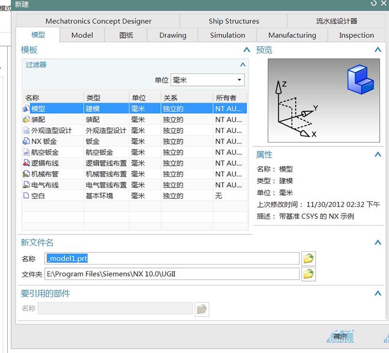 12、接下來我們選中NX10,然后選擇打開,就可以新建,開始建??F浒惭b好的頁面如下。