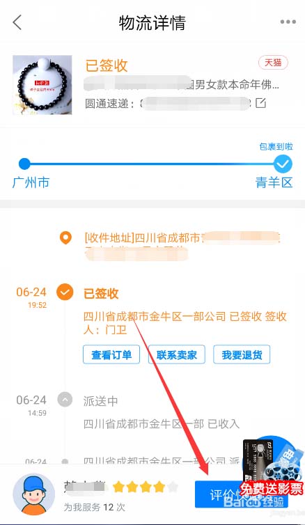 3、另外,在淘寶、天貓上的購物訂單包裹數(shù)據(jù)顯示在菜鳥里后,待系統(tǒng)顯示包裹已經(jīng)派送完成后,即可菜鳥裹裹首頁的“已收包裹”里點開物流單,詳情頁面下方點“評價快遞員”,勾選評價選項或自定義評語后,提交即可每單獲得50積分。
