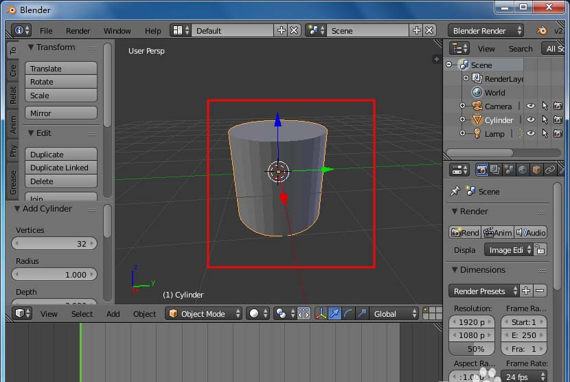 1、打開blender創(chuàng)建一個圓柱體。