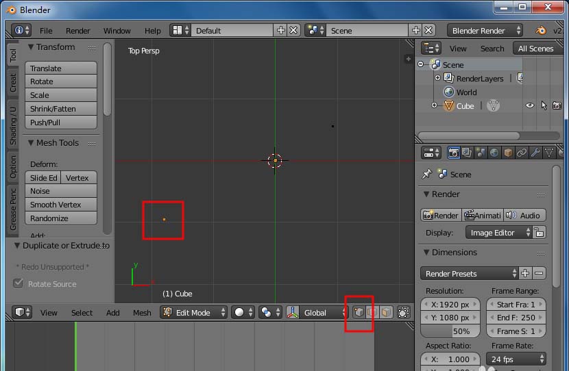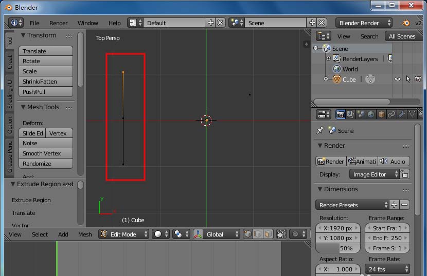 5、同樣的方法擠出連著的第二條線,接著選擇中間的頂點,切換到“3d cursor”,接著shift+s選擇“Cursor to Active”,游標會移動到中間的頂點上。