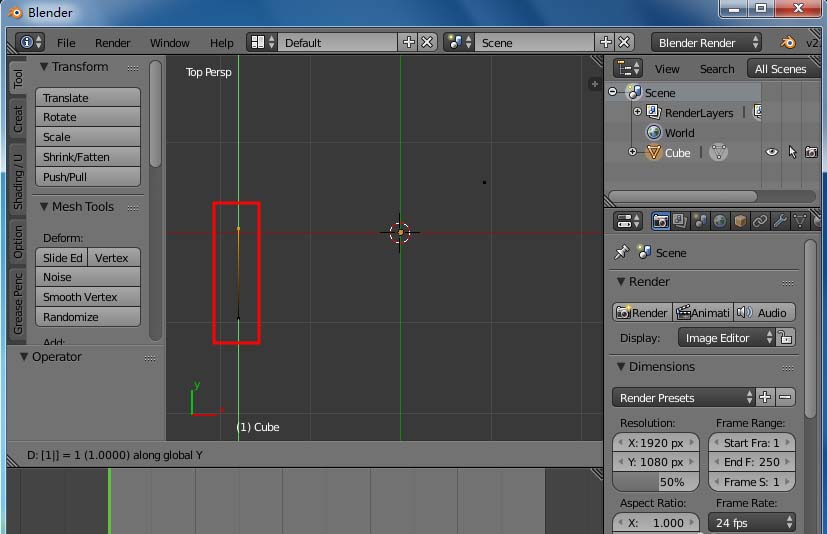 4、按”ey1“y方向擠出一條長度為1的線。