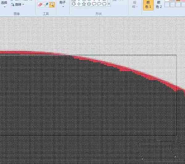 6、利用放大鏡放大3倍,并選擇鉛筆工具,利用鉛筆工具點(diǎn)擊方塊,最終達(dá)到紅色區(qū)域變?yōu)楹谏?/p>