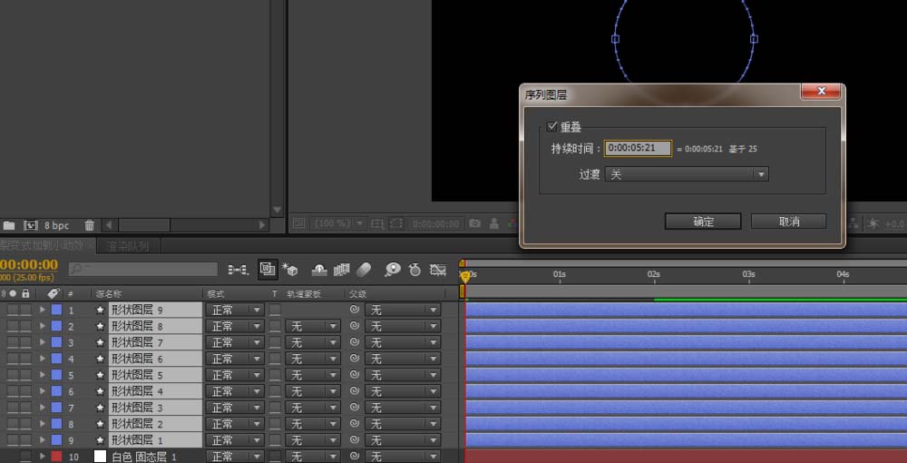5、選中9個形狀圖層,右擊關(guān)鍵幀輔助,選擇系列圖層,選擇時間點,每個圖層間隔4幀。