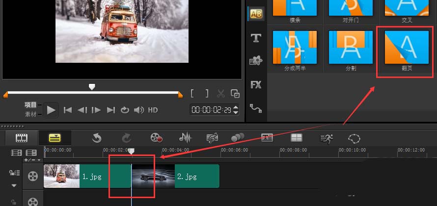 會聲會影翻頁轉(zhuǎn)場效果怎么使用?
