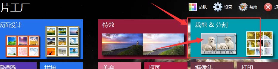 1、在圖片工廠主欄中有個裁剪分割的命令,如圖將其打開