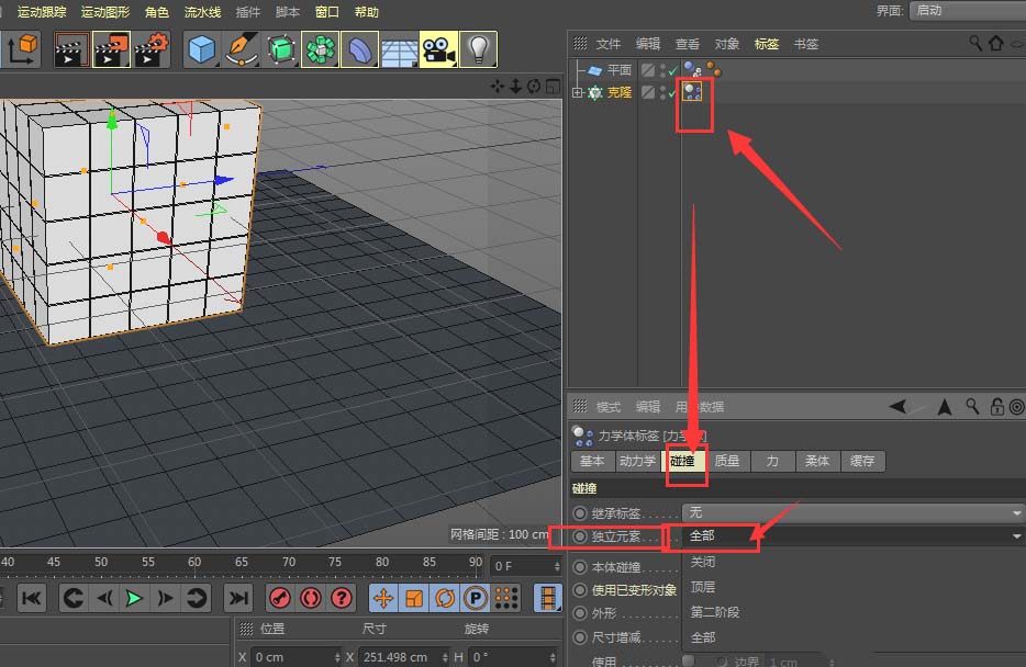 C4D動力學(xué)中物體怎么設(shè)置成獨立個體?