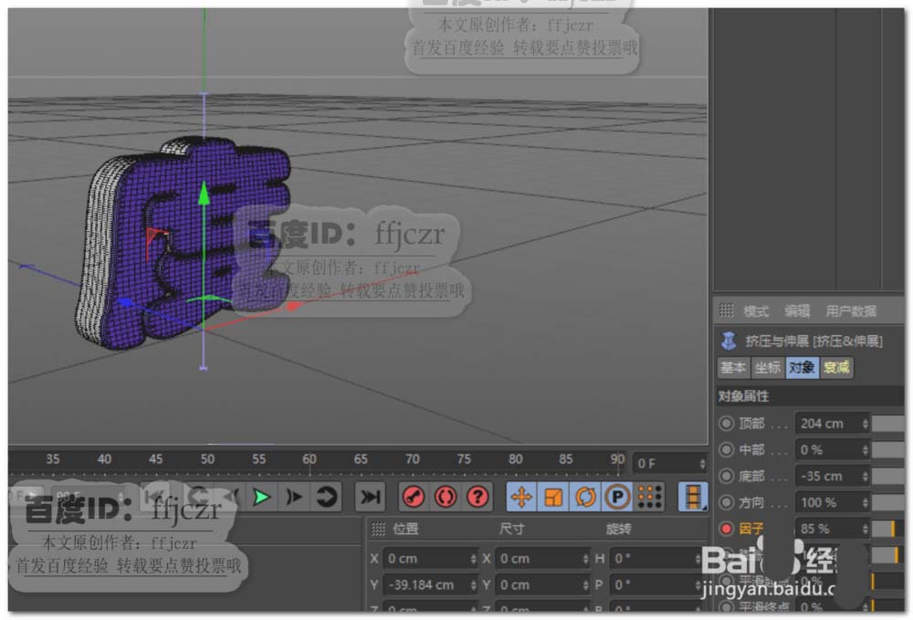 1、創(chuàng)建運動圖形中的文本,將文字內(nèi)容更改為所要的。調(diào)整對象中的點插值方式為統(tǒng)一,兩端圓角封頂,封頂中的類型為四邊形,標準網(wǎng)格;使文本的所有文字都產(chǎn)生較為均勻的網(wǎng)格。如圖所示。