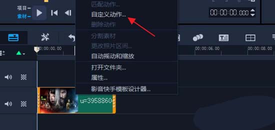 2、接下來,我們用鼠標右鍵點擊這個視頻,然后點擊出現(xiàn)的自定義動作。