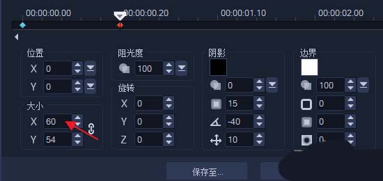 4、接下來,我們隨便創(chuàng)建一個關(guān)鍵幀。我們將這個關(guān)鍵幀的X軸修改為60,Y軸為54。