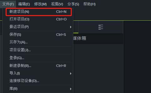 1、打開Camtasia 9軟件,在文件菜單下選擇新建項目,新建一個Camtasia 9項目。