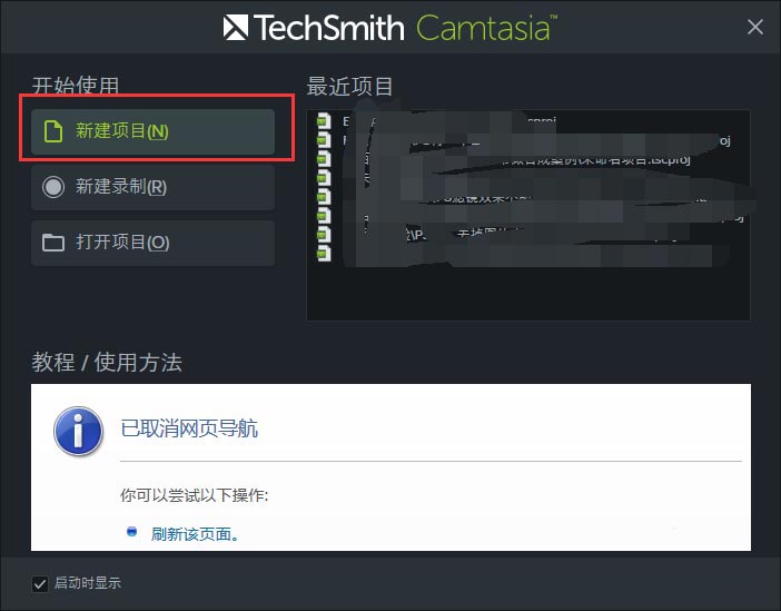 1、先安裝好Camtasia 9軟件,然后雙擊Camtasia 9在開(kāi)始?xì)g迎界面中選擇“新建項(xiàng)目”。