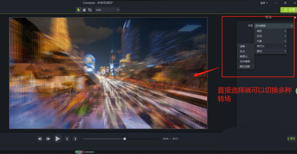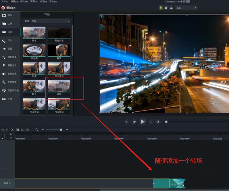Camtasia9怎么切換多種轉(zhuǎn)場(chǎng)?