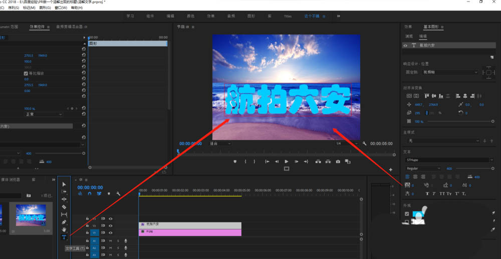 3、選擇文本工具單擊輸入標題內(nèi)容,然后單擊文字打開屬性設(shè)置窗口,設(shè)置標題文字屬性。