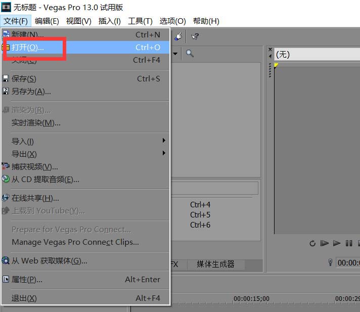 1、首先運行vegas軟件,點擊文件按鈕,如圖。