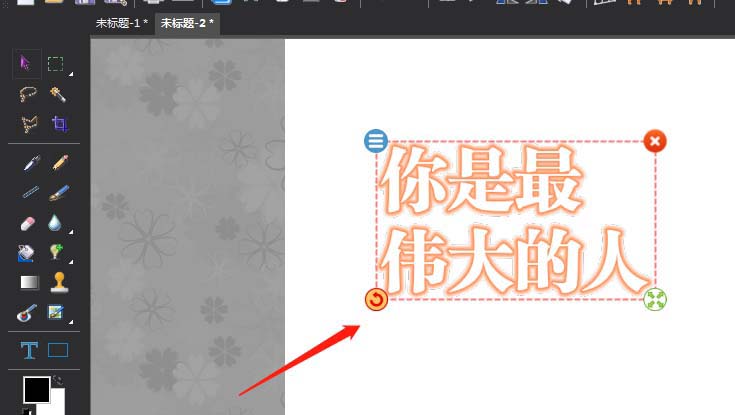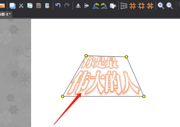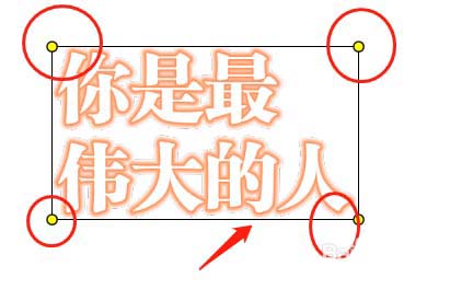 6、這樣在文字邊框的四個(gè)角會(huì)出現(xiàn)黃色的調(diào)整圓點(diǎn),可以鼠標(biāo)調(diào)整這里的圓點(diǎn)