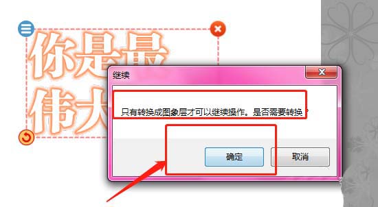 5、只有將當(dāng)前文字轉(zhuǎn)為圖像才可以繼續(xù)操作,選擇這里的確認(rèn)即可