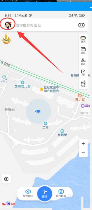 2、來到百度地圖的界面,點(diǎn)擊左上角的頭像,如圖所示