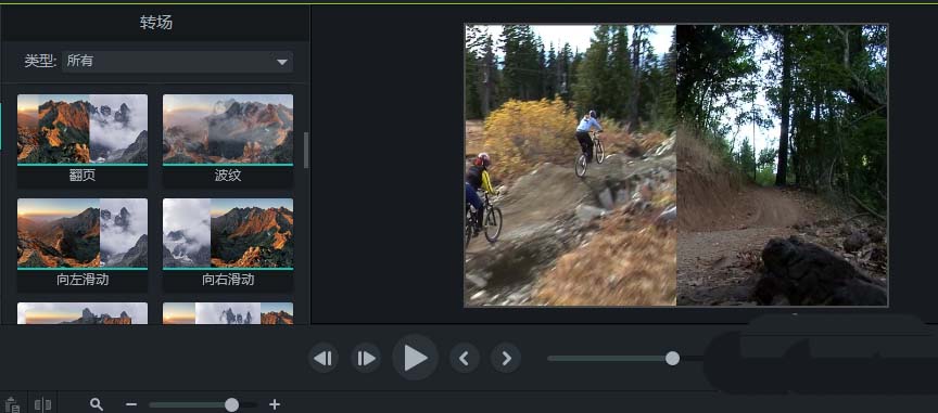 6、添加了向左滑動(dòng)的轉(zhuǎn)場(chǎng)之后,播放時(shí)間軸,當(dāng)時(shí)間軸播放到兩個(gè)視頻之間的轉(zhuǎn)場(chǎng)的時(shí)候,就會(huì)出現(xiàn)向左滑動(dòng)的效果了。