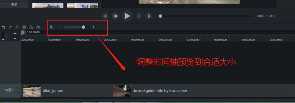 4、選擇控制縮放時(shí)間軸窗口預(yù)覽的按鈕命令,點(diǎn)擊放大時(shí)間軸窗口預(yù)覽到合適。