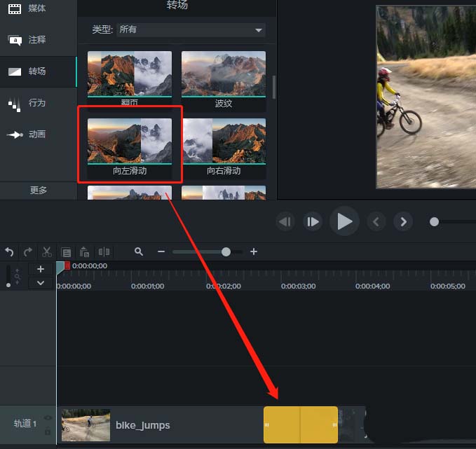 Camtasia9怎么給素材添加向左滑動(dòng)的轉(zhuǎn)場(chǎng)效果?