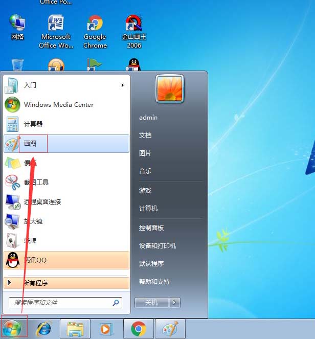 1、先點(diǎn)“開(kāi)始”菜單,找到“畫(huà)圖”程序;