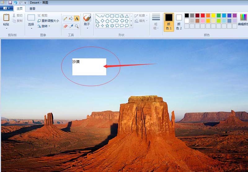 6、給這幅畫(huà)輸入說(shuō)明性標(biāo)題文字,如”沙漠“;