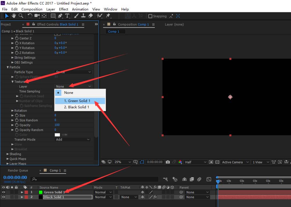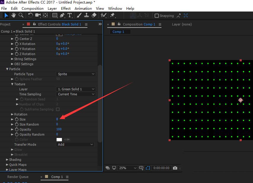 6、調(diào)節(jié)粒子樣式,替換成新建的比較小的固態(tài)層。