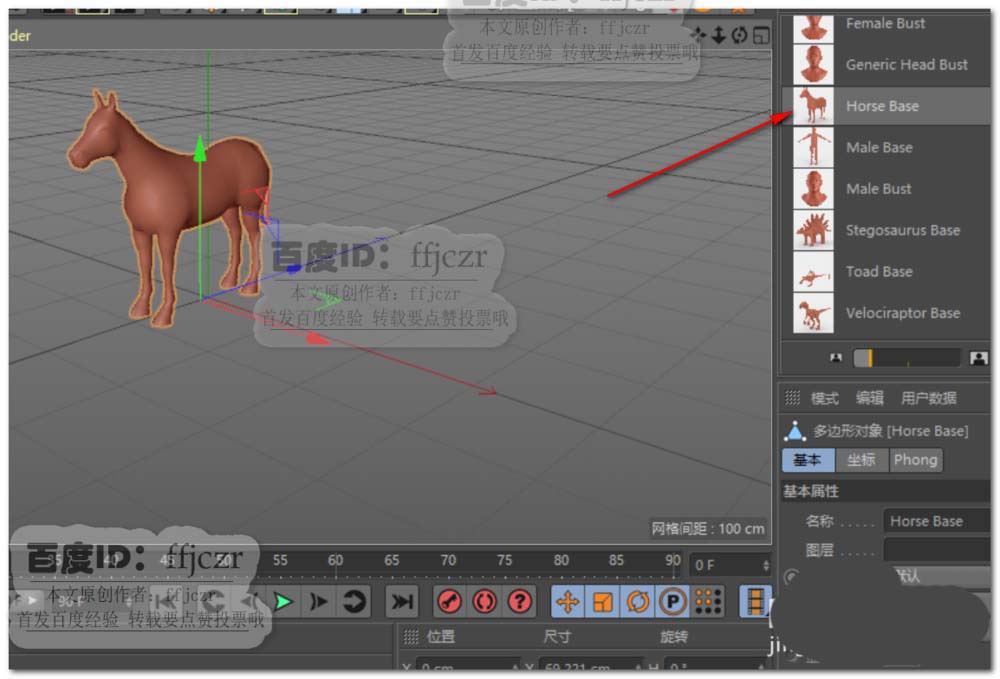 1、選用軟件自帶的模型馬,作為本文的主角。