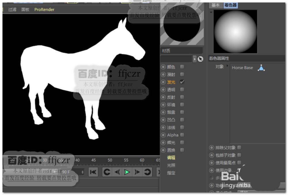 2、將原模型的材質(zhì)刪除,新建一個(gè)材質(zhì),只激活發(fā)光通道;在發(fā)光通道紋理中選擇效果中的接近。