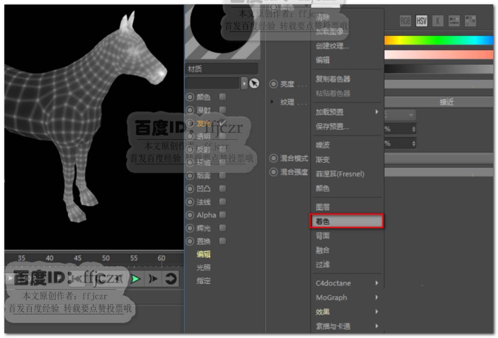 5、回到發(fā)光通道,在紋理項(xiàng)中添加一個(gè)著色;渲染即可得到有顏色的發(fā)光結(jié)構(gòu)線。