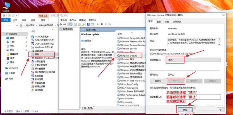 6、服務(wù)——windows update——禁用——停止——確定(操作這個(gè)步驟后應(yīng)用商店無法使用,如要使用應(yīng)用商店跳過此步驟)