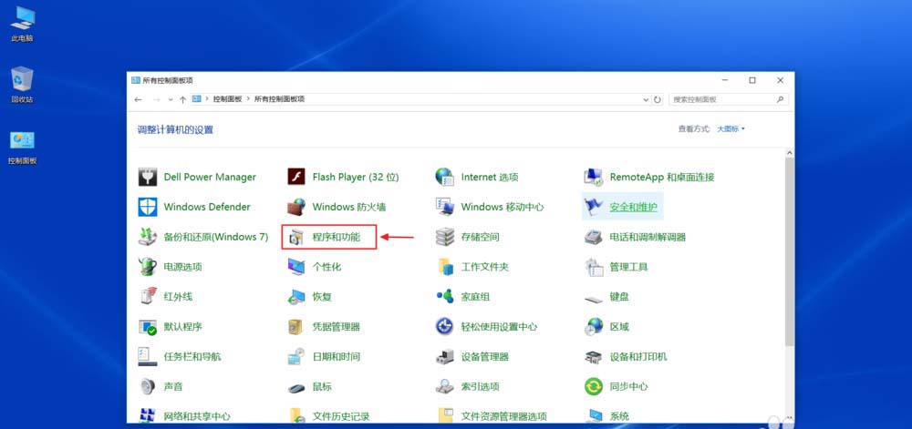 2、桌面上的控制面板——選擇大圖標(biāo)