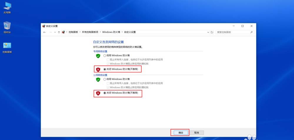 15、啟用或關(guān)閉windows防火墻——兩個(gè)都關(guān)閉——確定(關(guān)閉防火墻不怎么會影響安全性,只要你有殺毒軟件一般是沒問題的)