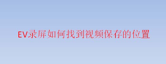 EV錄屏視頻保存在哪? 查看EV錄屏文件保存位置的方法