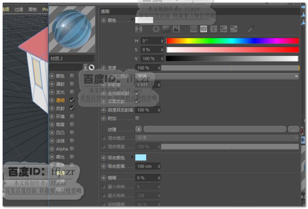 7、選擇屋子模型的屋頂與門保存成選集,屋子的玻璃何存成另一選集;創(chuàng)建三個材質(zhì),分別為白色、紅色與透明藍色的玻璃材質(zhì)。根據(jù)屋子的需要,分別賦予屋頂、門紅色材質(zhì),門窗賦予藍色的玻璃材質(zhì)??梢哉{(diào)整任何角度,得到不同角度的簡筆風格的小房屋。