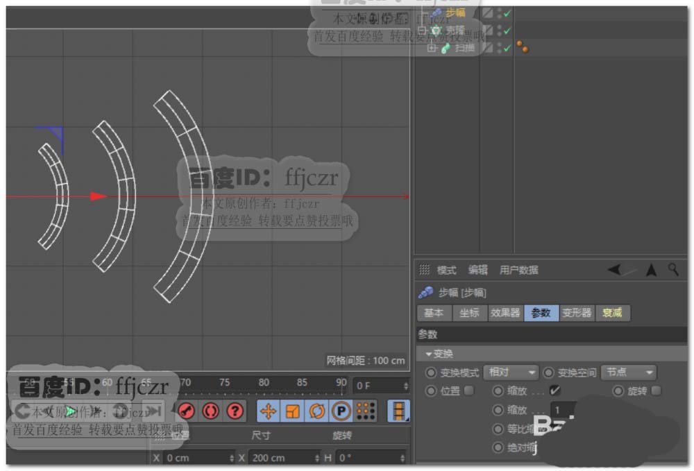5、給克隆添加一個(gè)步幅效果器,只勾選其中的縮放,選用等比縮放,值為1.