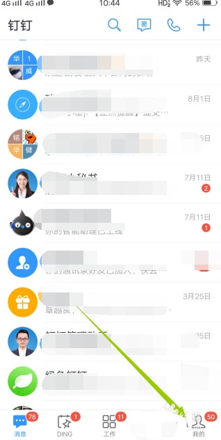 1、首先,打開(kāi)登錄手機(jī)中的釘釘軟件,一般都是自動(dòng)登錄的,顯示主頁(yè),點(diǎn)擊右下角的我的。