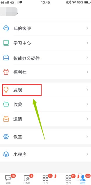 2、進(jìn)入到個(gè)人界面,往下翻,找到里面的發(fā)現(xiàn)選項(xiàng),點(diǎn)擊進(jìn)入。