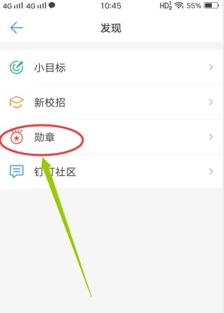 3、接著進(jìn)入到發(fā)現(xiàn)頁(yè)面,我們可以找到其中的勛章選項(xiàng),打開(kāi)。