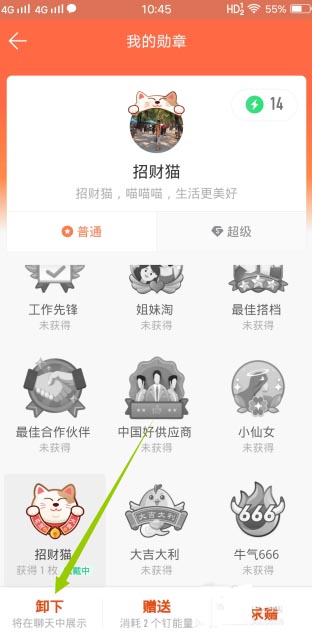 5、此時(shí)底部會(huì)出現(xiàn)一些勛章掛件設(shè)置內(nèi)容,點(diǎn)擊左下角的卸下按鈕。