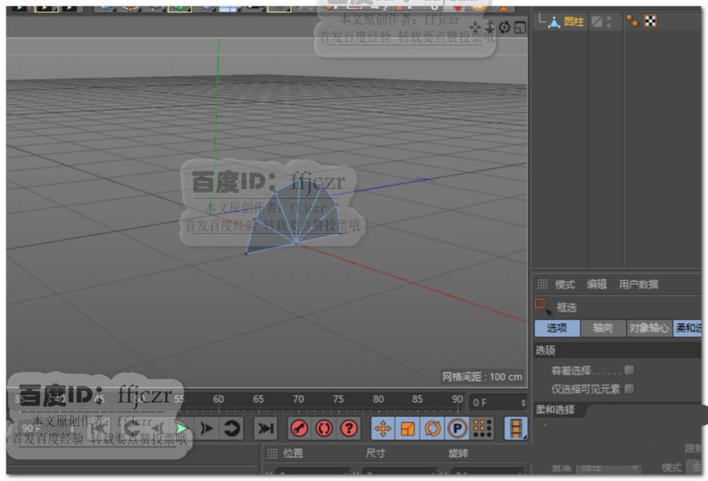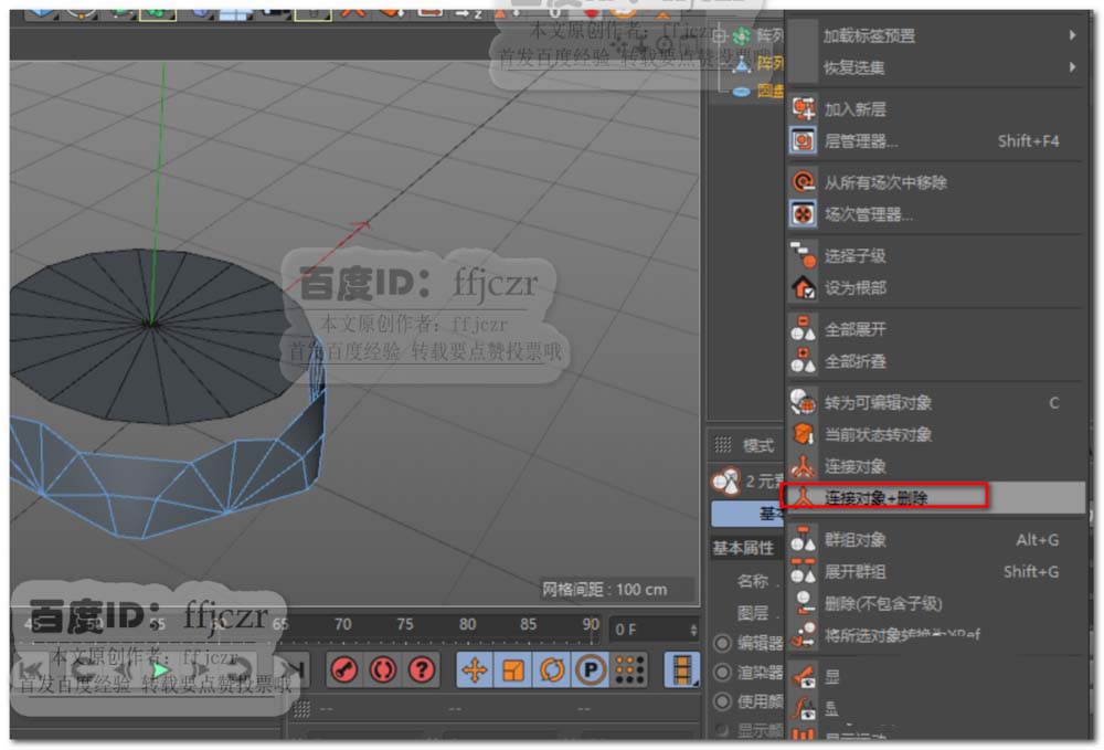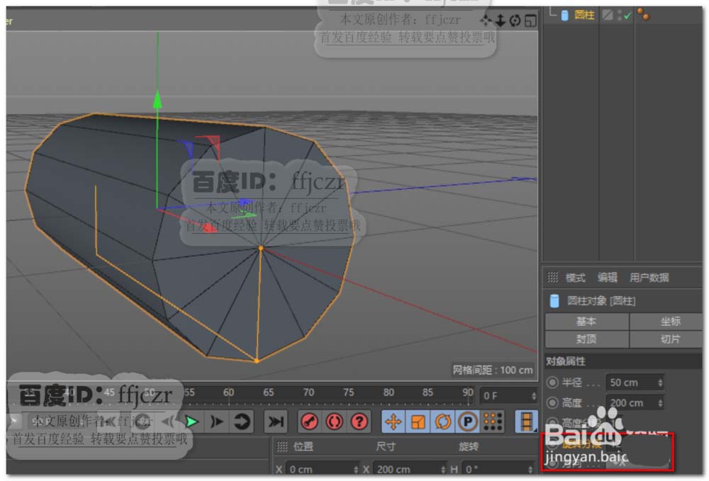 2、將圓柱體轉(zhuǎn)為可編輯對象,保留圓柱體的一端封口,并刪除封口的下半部分。