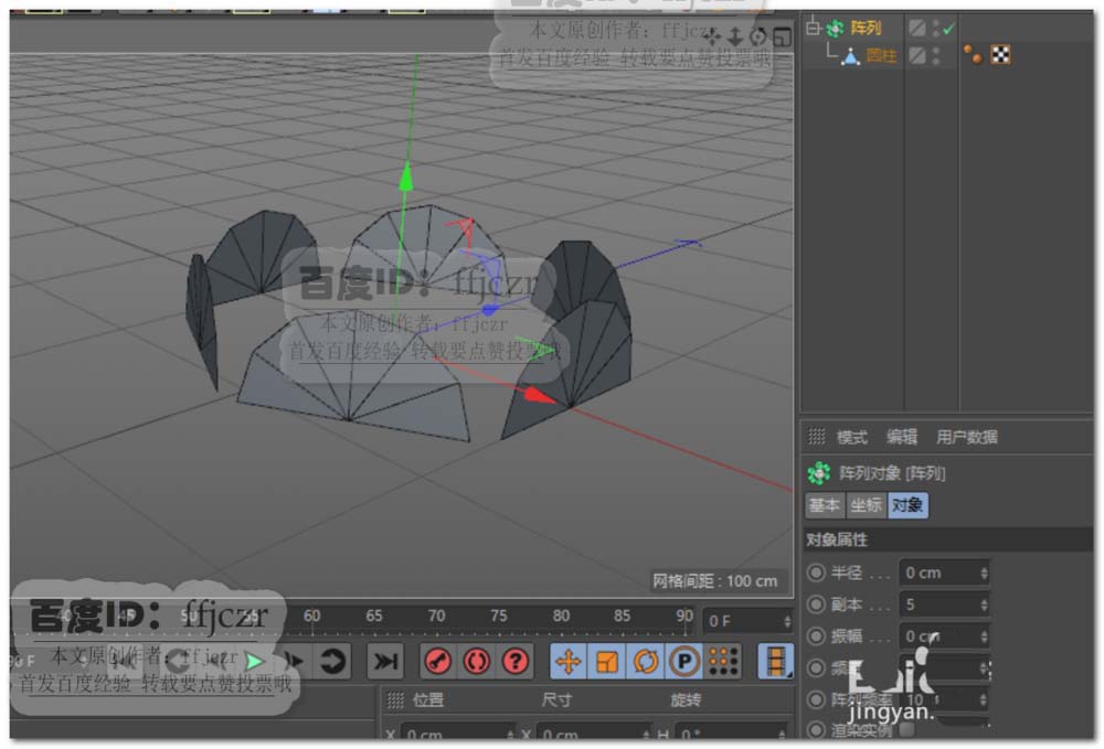 3、將上步得到的半圓面進(jìn)行陣列,陣列的半徑為0,副本為5。