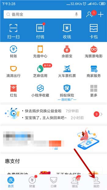 1、點(diǎn)擊打開支付寶,進(jìn)入主界面后點(diǎn)擊右下角的【我的】。