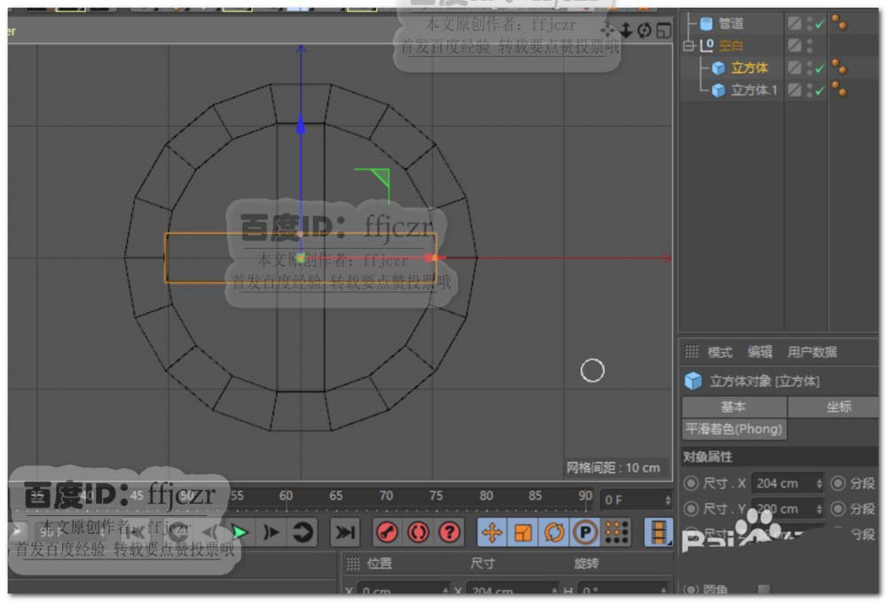 1、為方便創(chuàng)建十字通孔,首先創(chuàng)建出要開的十字形。創(chuàng)建一個(gè)200*200*40的長(zhǎng)方體,復(fù)制該長(zhǎng)方體,調(diào)整其X軸的角度為90。即可得到兩個(gè)長(zhǎng)方體組成的十字形。如圖所示。這個(gè)形狀只起到參考的作用。