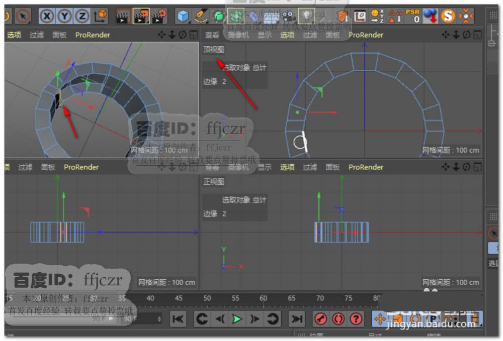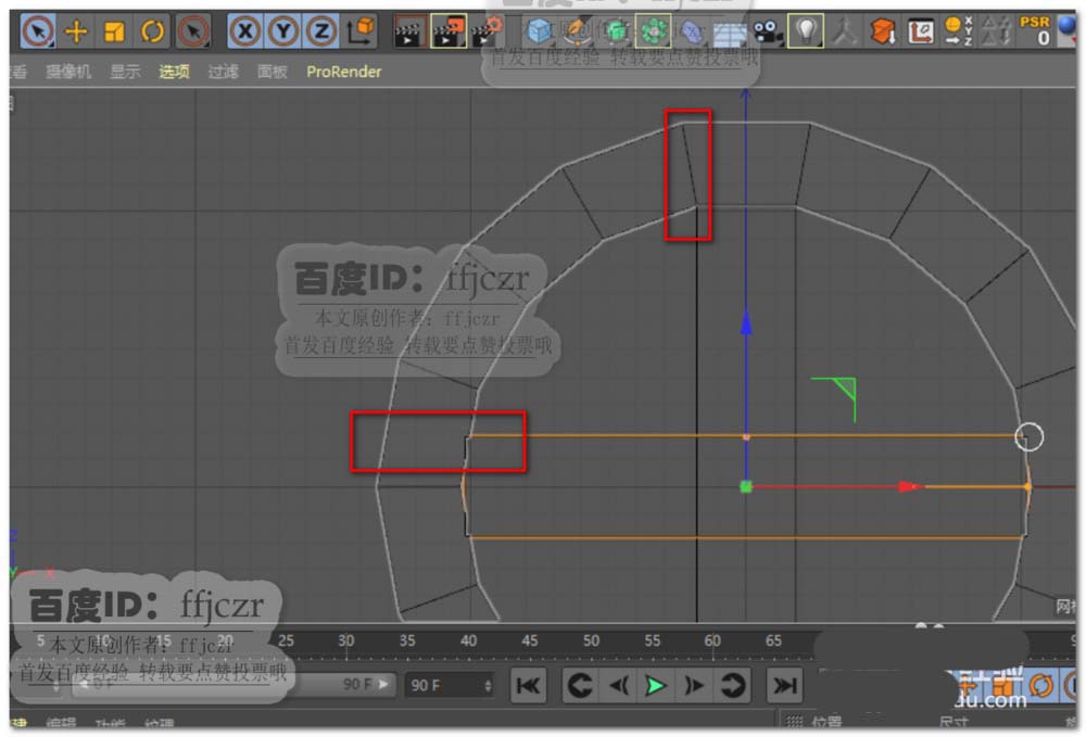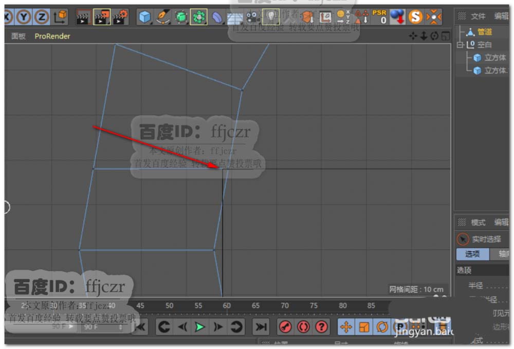 3、從頂視圖中可以看出,參考十字形與圓管的左側(cè)相差一條結(jié)構(gòu)線。用切刀工具添加相應(yīng)結(jié)構(gòu)線。如圖所示。