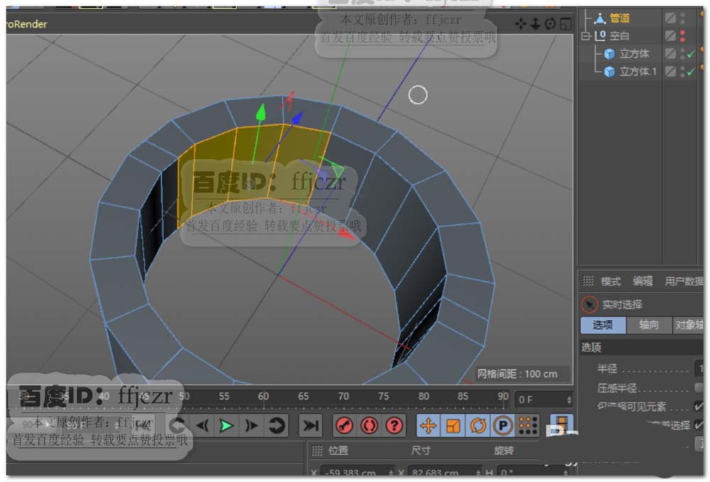 2、創(chuàng)建一個(gè)圓管,旋轉(zhuǎn)分段為18;將其內(nèi)徑調(diào)整到與第一步創(chuàng)建的十字形最大外輪廓相一致。