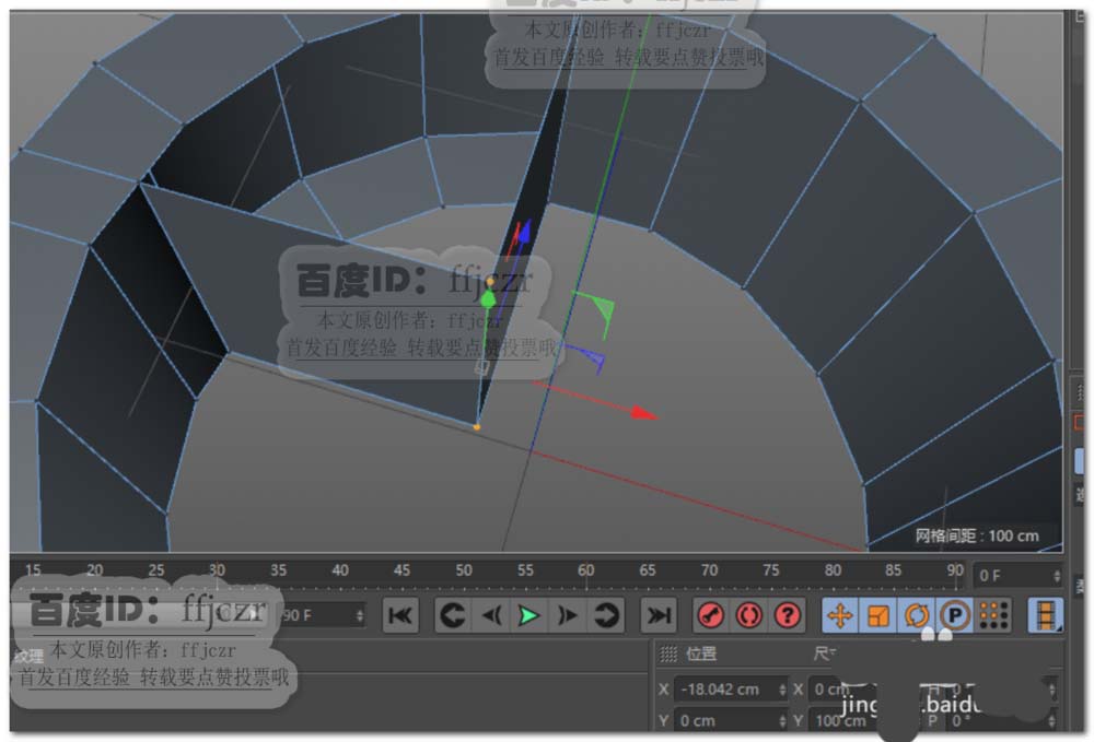 4、按圖選中相應(yīng)的面將其刪除,分別選中參考十字形對(duì)應(yīng)的邊進(jìn)行移動(dòng)復(fù)制。