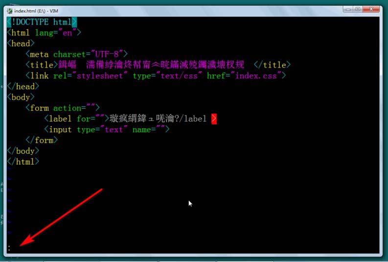 3、直接輸入冒號(hào),可以看到左下角有冒號(hào)出現(xiàn)。