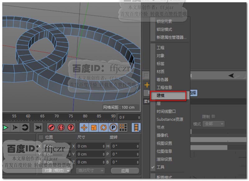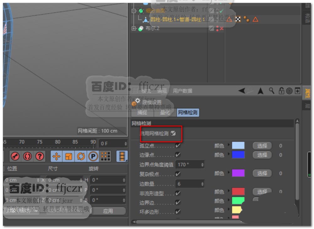 4、這時可以點(diǎn)開右側(cè)模式菜單,選擇其中的建模;在建模模式中勾選啟用網(wǎng)格檢測。