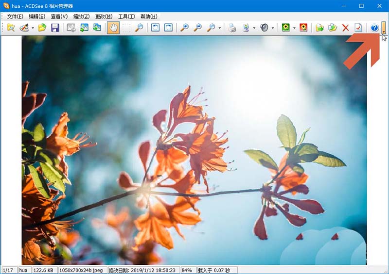 1、點(diǎn)擊ACDSee8工具欄右側(cè)圖示的小三角按鈕。